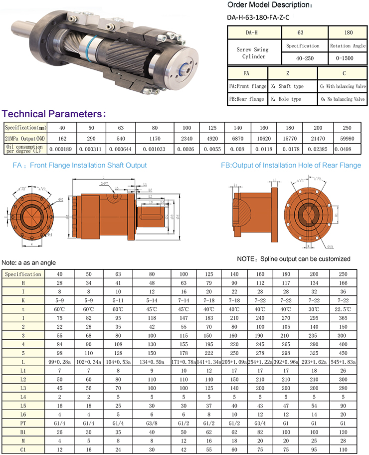 DA-H螺旋擺動油缸