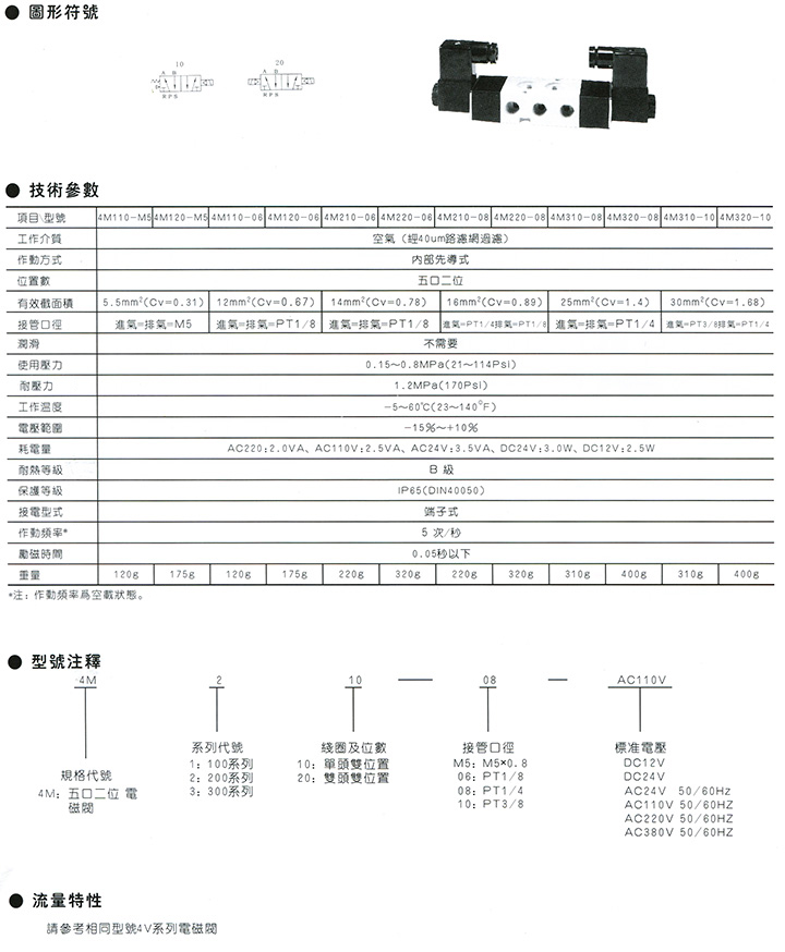 4M系列電磁閥(五口二位)